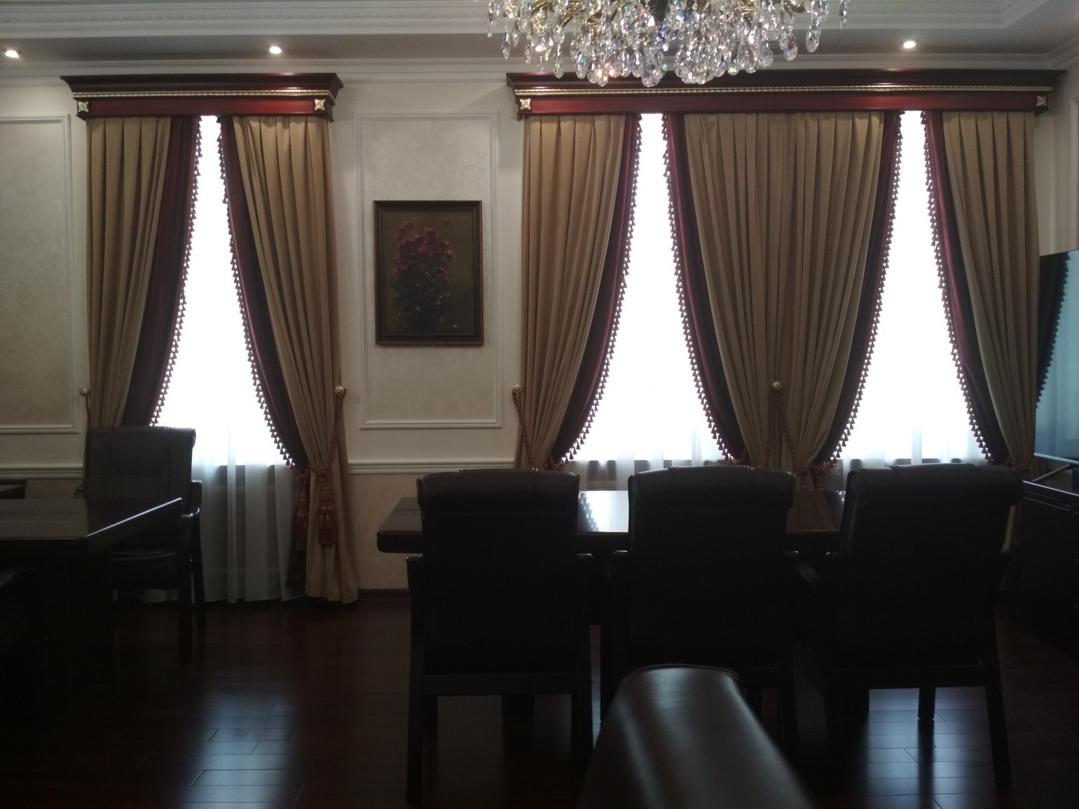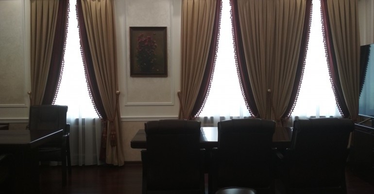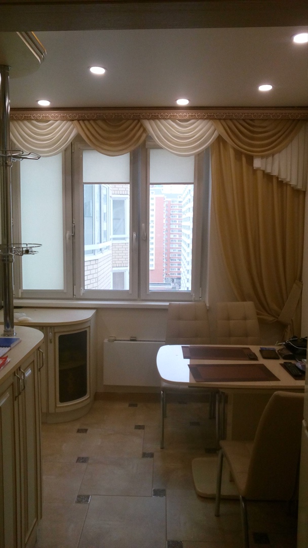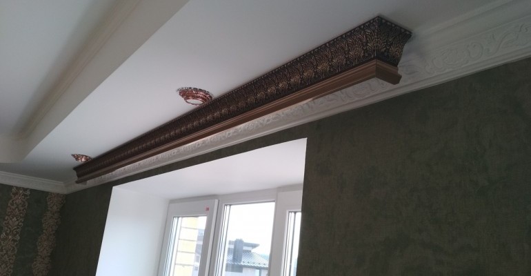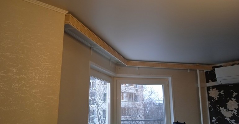 Мы изготавливаем багетные карнизы любых форм и размеров, в том числе для сложных эркерных окон. По желанию багетный карниз можно укомплектовать алюминиевым профилем, в том числе с дистанционным управлением.